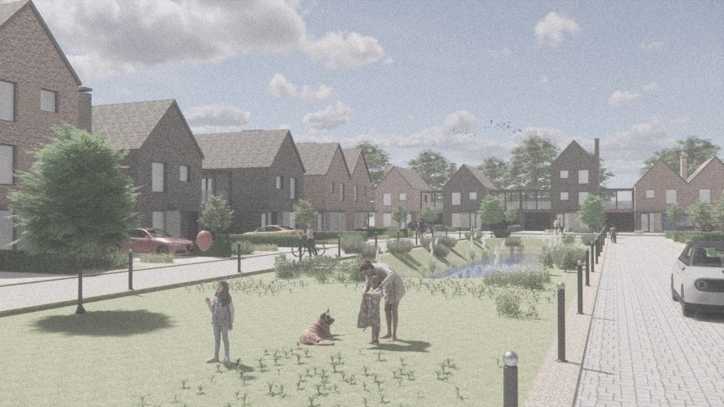The proposals include extensive green infrastructure, including riverside parkland, green corridors and habitat creation. Existing landscape features will be retained and enhanced wherever possible, supported by new planting and ecological improvements that contribute to biodiversity net gain.